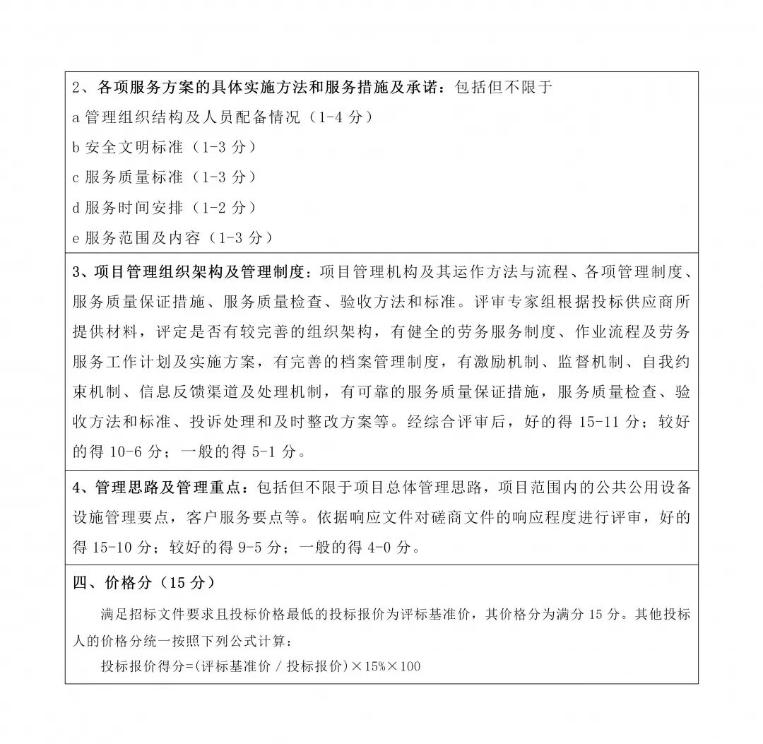 想得到理想的分数,就必须的有,至于到底怎么有,一千个投标人有一千个办法,这里就就不说了。我们在这里先分享一个食堂承包采购项目的评分表,供大家参考,基本上从这张表中分值的多少,就能判断采购项目关注的重点是什么。